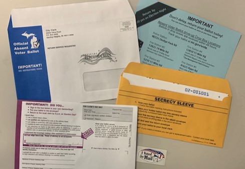 Voters may request an absent voter ballot by completing an online application at Get My Absentee Ballot. Alternatively, you may request an absent voter ballot in writing and submit it to your city, township or village clerk (find your clerk here),
